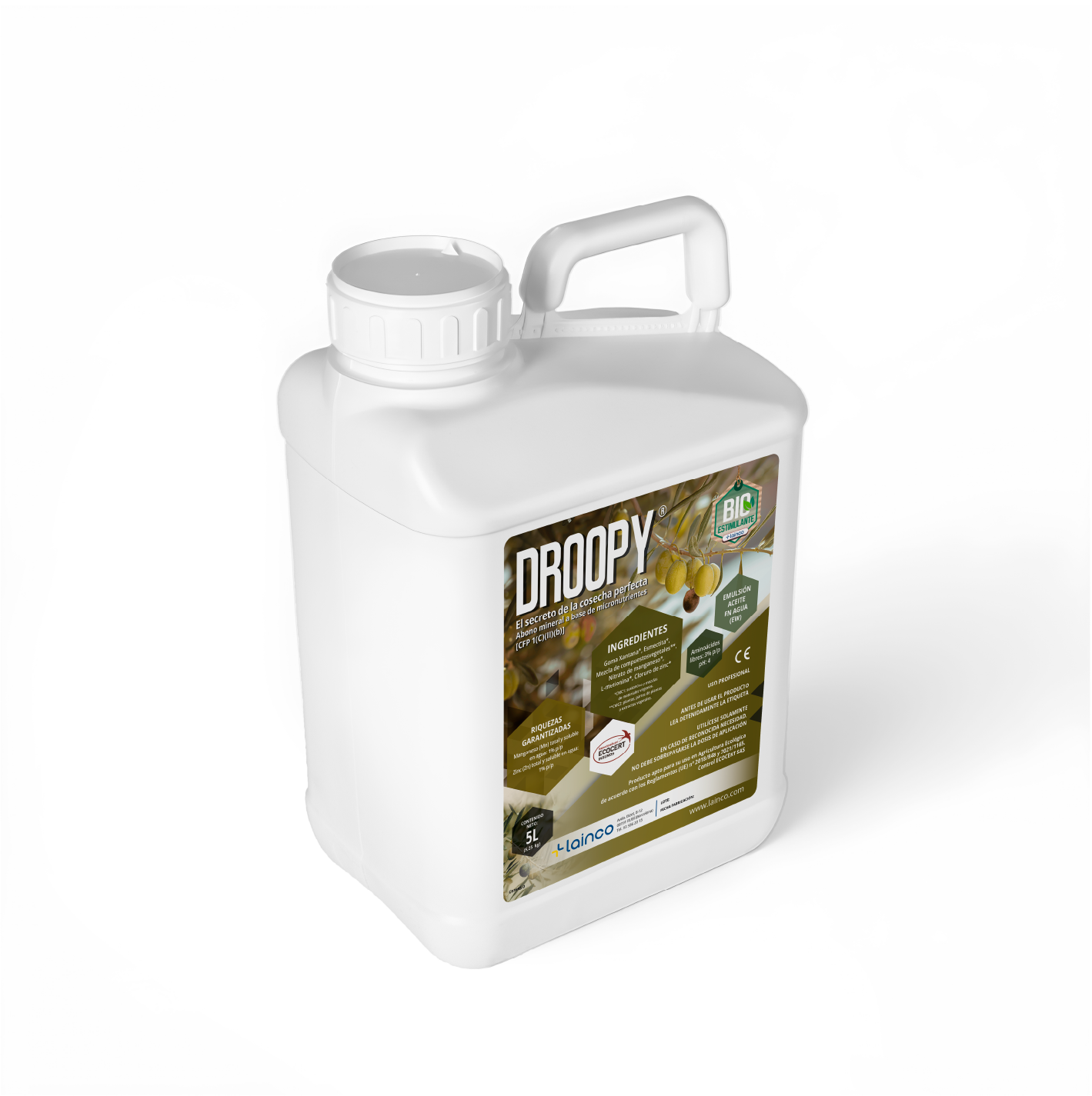 DROOPY es un fertilizante especialmente diseñado para su uso en el cultivo del olivar. Su acción se centra en facilitar la caída de la aceituna en el momento de la recolección, además de minimizar efectos secundarios tales como la caída de hoja.